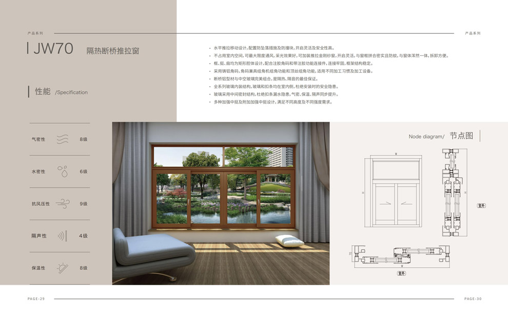 水平推拉移動設計,配置防墜落措施及防撞塊,開啟靈活及安全性高。